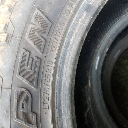 Toyo Open Country A/T Tires 275/65/R18 size 123/120S 10 Ply Matched set - two tires have around 35-45% tread and two tires have at least 50% tread or more. No holes or patches - very good set of...